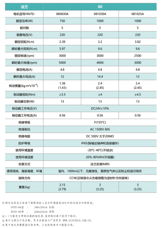 产品简介:HN7D系列 经济款伺服电机 机座尺寸60、80,分为有/无抱闸款式; 机身颜色分为黑/银,可能根据要求进行定制;