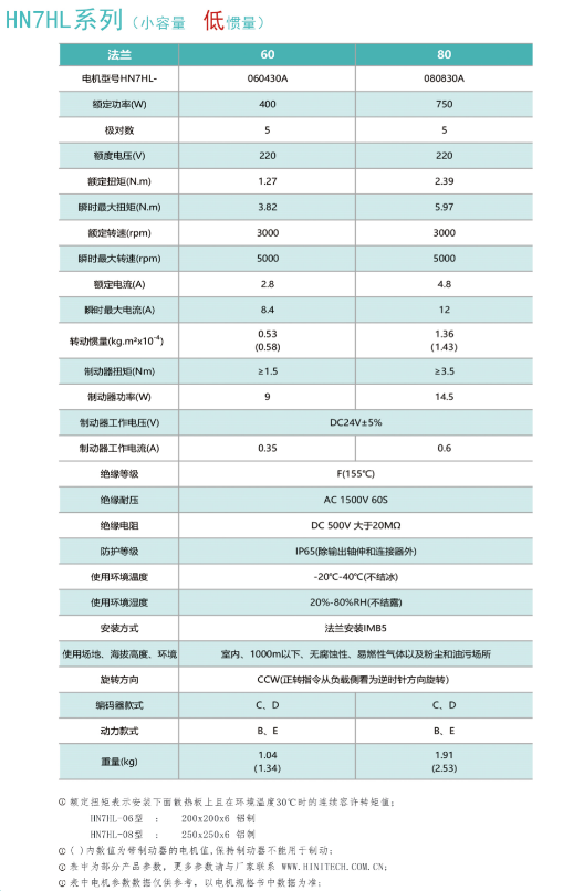 惯量规格:HN7H中惯量 、HN7HL低惯量 、HN7HH高惯量
