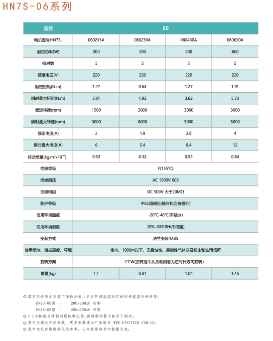 产品简介:产品型号:HN7S-06/08 产品简介:HN7S系列同步电机 机座尺寸60、80 ,无刹车无编码器,根据需求可定制是否安装风扇